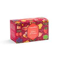 Selezione di 5 infusi di frutta: Agrumi di Sicilia Bio, Fragole e Ibisco Bio, Frutti di bosco Bio, Mandarino e Zenzero Bio, Mela e Cannella Bio.